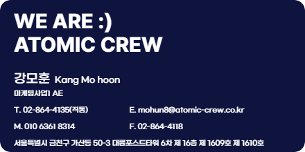 - 이메일 : atomiccrew@atomic-crew.co.kr
