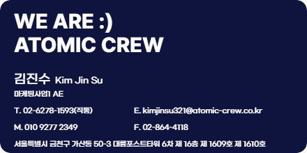 아토믹크루 마케팅 1팀 김진수 였습니다.
